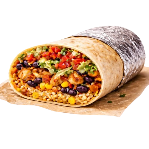 Our burrito is packed from end to end with flavourful ingredients, wrapped in a warm flour tortilla and built for a satisfying bite every time. Filled with seasoned rice, hearty beans, fresh lettuce, sweet corn, and pico de gallo, then finished with your choice of protein, this burrito delivers bold, comforting flavours in every layer.